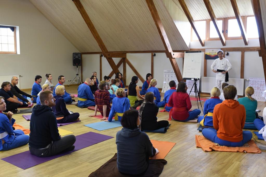 To end the practice, for an easy transition to the day-to-day life, a few fitness exercises are included – head stand, push-ups and sit-ups (approx. 5 min).
